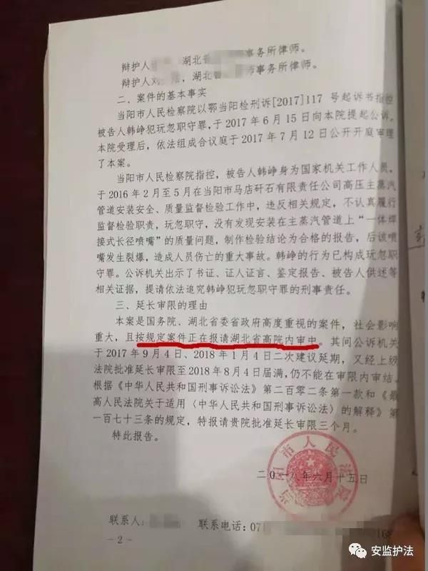 本案一审期间,湖北省当阳市人民法院曾向最高人民法院提请延长审限:本案是国务院、湖北省委省政府高度重视的案件,社会影响重大,且按规定案件正在报请湖北省高院内审中……特报请贵院批准延长审限三个月。