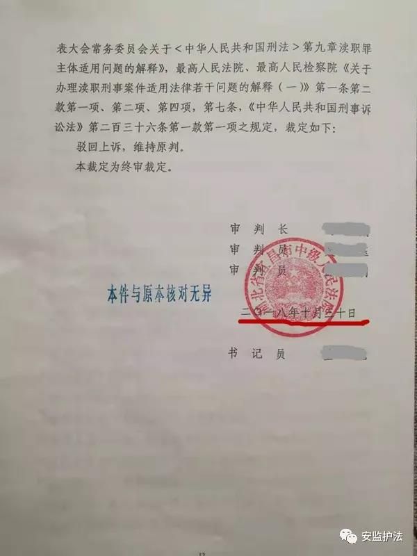 2018年10月18日,韩峥委托本人到二审法院提交新的证据材料、法律法规和文件资料,请求法院开庭审理本案。在获悉法院不开庭消息后,2018年10月30日,本人到二审法院阅卷,二审承办法官予以了安排。可是,就在辩护人研究案卷并准备书面辩护意见期间,2018年12月16日,本人收到二审法院驳回上诉、维持原判的裁定书,裁定书落款日期是2018年10月30日。