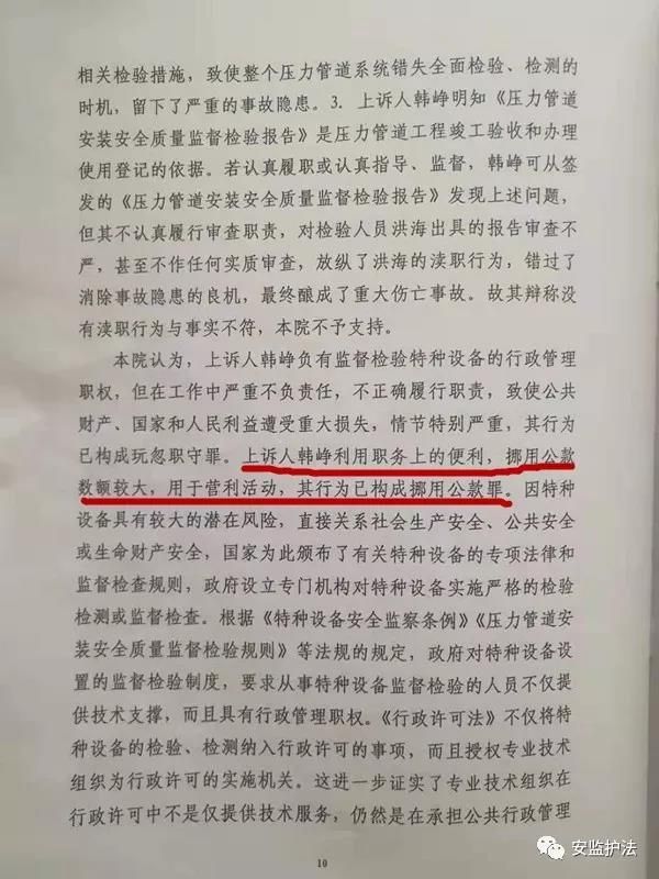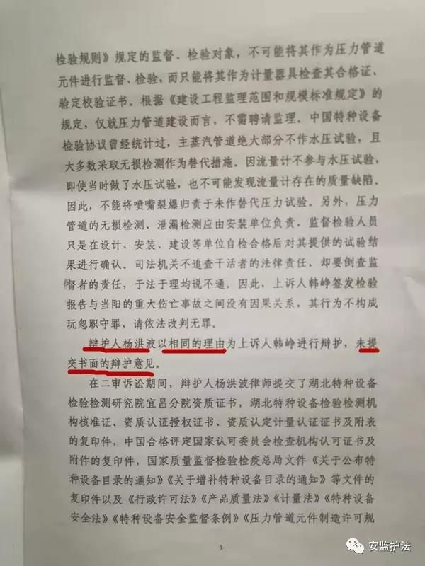 由于湖北省高院的“内审”干预,一审法院置“事故喷嘴”并未列入《特种设备目录》中、国家质检总局关于“流量计不属于压力管道安装过程监督检验的对象”的答复意见于不顾,判决韩峥、洪海、饶友谊三名特种设备检验检测人员玩忽职守罪成立。