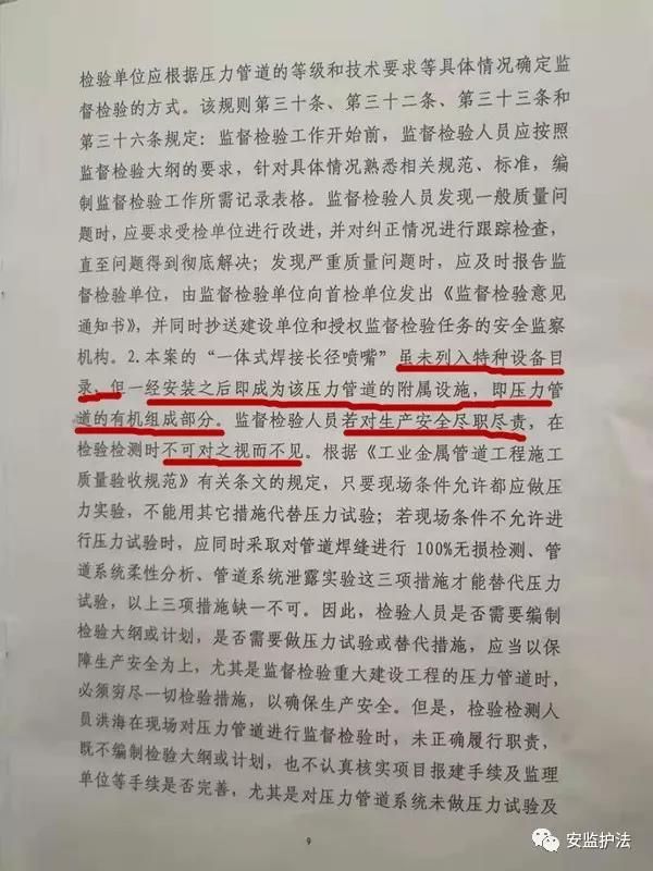 由此可见,关于项目报建手续及监理单位缺失问题,以及压力管道系统未做压力试验问题,均属于授权审核人审查范围,不应由授权签字人审查。当然,检验人员洪海未编制检验大纲或计划属于程序上的瑕疵,作为授权签字人的韩峥未予纠正,履行职责上还是存在一定问题的,但仅凭这一点并不足以追究其玩忽职守罪。